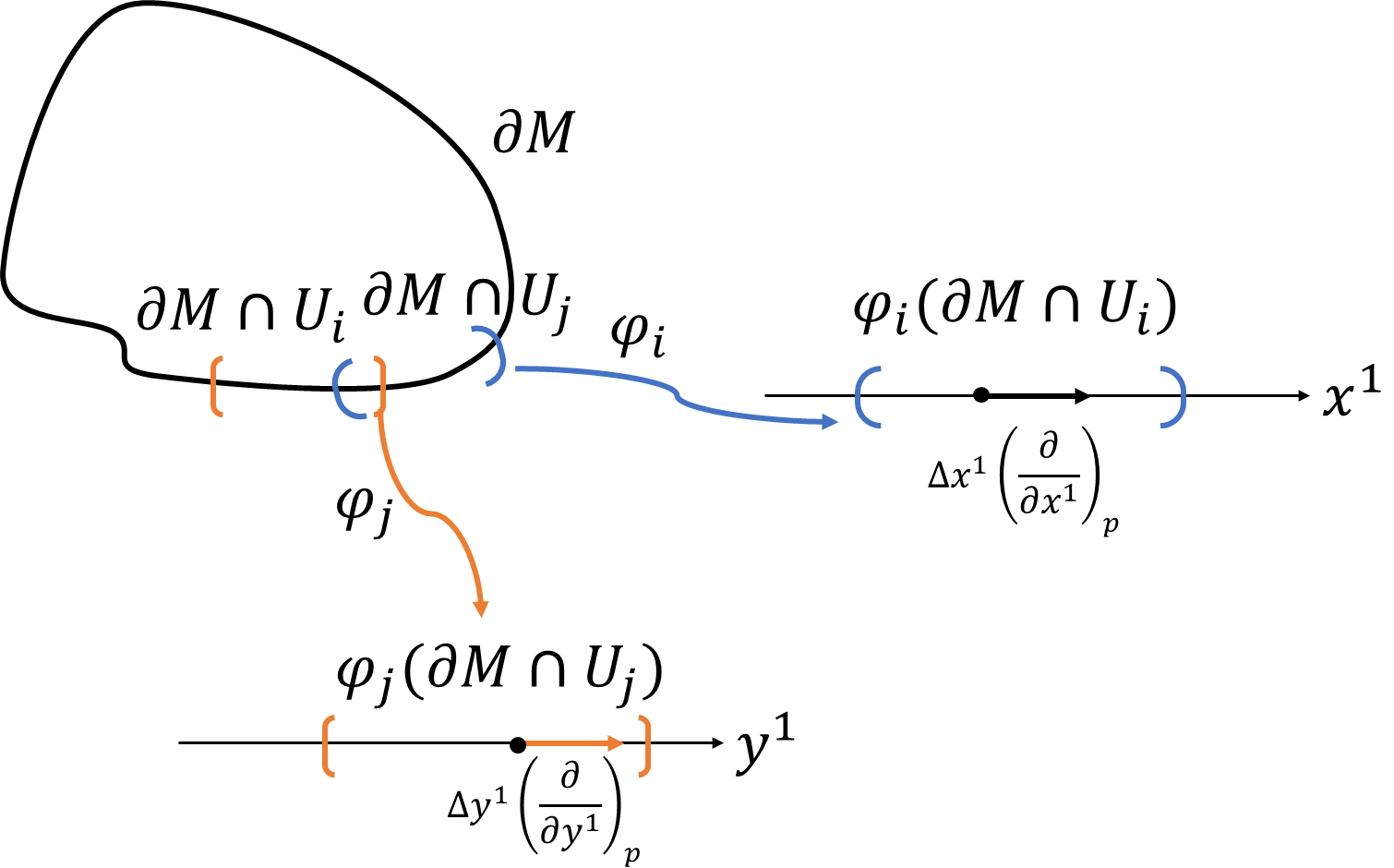 とします。座標変換\(\varphi_j|_{\partial M}\circ\varphi_i^{-1}|_{\partial M}\)によって、