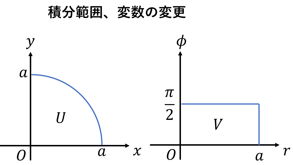 さっきと全く同じ問題(半径\(a\)の円の面積)を重積分を使って解いていきます。